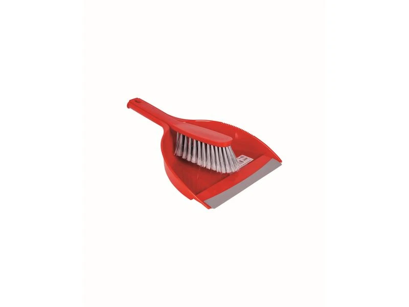 Een stevig veger en blik. Voorzien van een rubberen strip zodat zelfs het kleinste vuil als zand eenvoudig kan worden opgeveegd.
