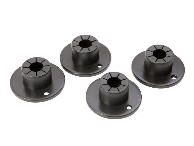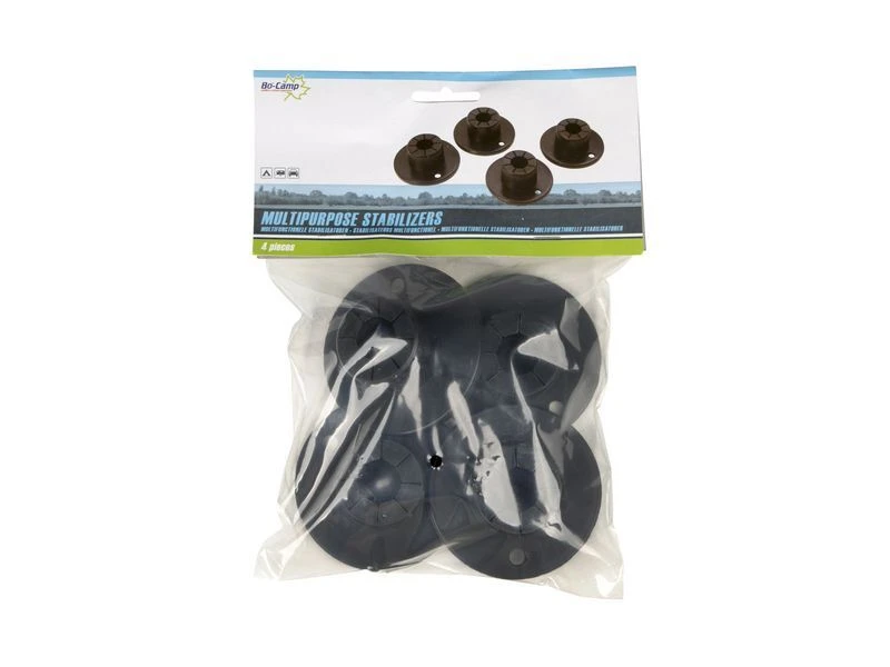Set van 4 kunststof stabilisatoren. Deze zorgen ervoor dat de voeten van opstapjes niet weg zakken in de grond. Ook te gebruiken als voetjes voor tentstokken, tafelpoten, stoelpoten etc. Ø Opening: 1,9 centimeter.