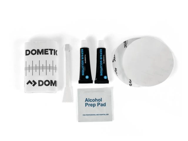 Leveringsomvang: 2 7.5cm repair patches; 1 repair tape; 2 5g repair solution; 1 alcohol wipe sachet; 1 spatula