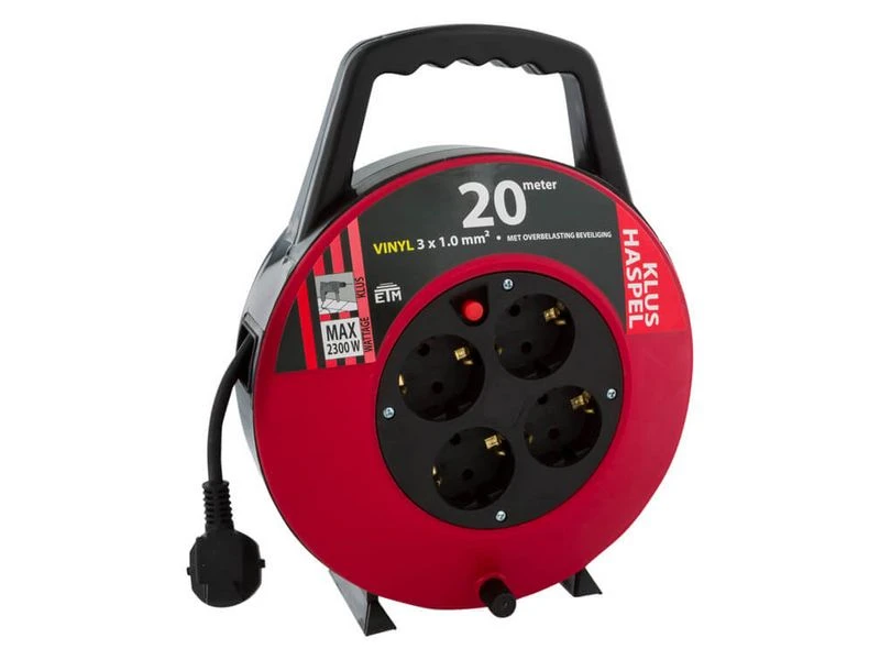 Maximaal vermogen bij uitgerolde kabel: 2300W (opgerold max. 750W)
