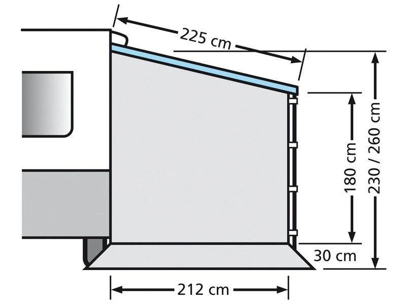 Universele zijwanden voor aan de caravan cassette luifels zoals Fiama of Omnistore.