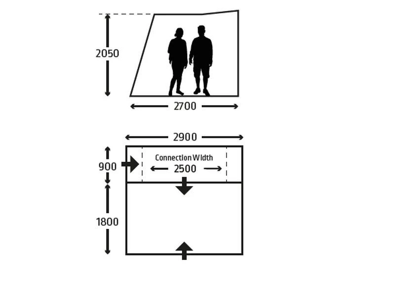Ideaal voor weekendavonturiers die een snel onderdak nodig hebben. De trip air kan gegarandeerd snel worden opgezet en afgebroken, zelfs als u alleen rondtrekt. Compleet met een inklikbaar waterdicht grondzeil, twee ramen over de volledige hoogte met rolluiken en een grote voordeur. De verbindingstunnel heeft een handige zijdeur die eenvoudige toegang biedt.